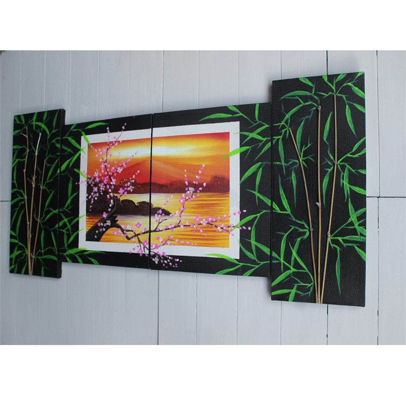 Lukisan Pemandangan Gunung Danau Bambu Asli Hiasan Dinding Dekoratif Home Decor Shopee Indonesia
